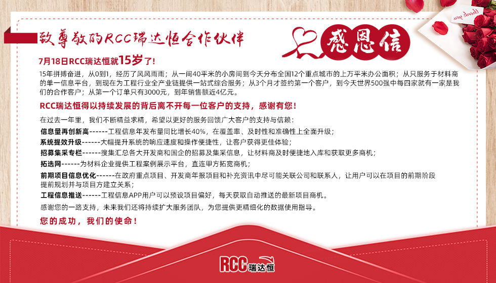 7月18日,RCC瑞达恒15岁了!